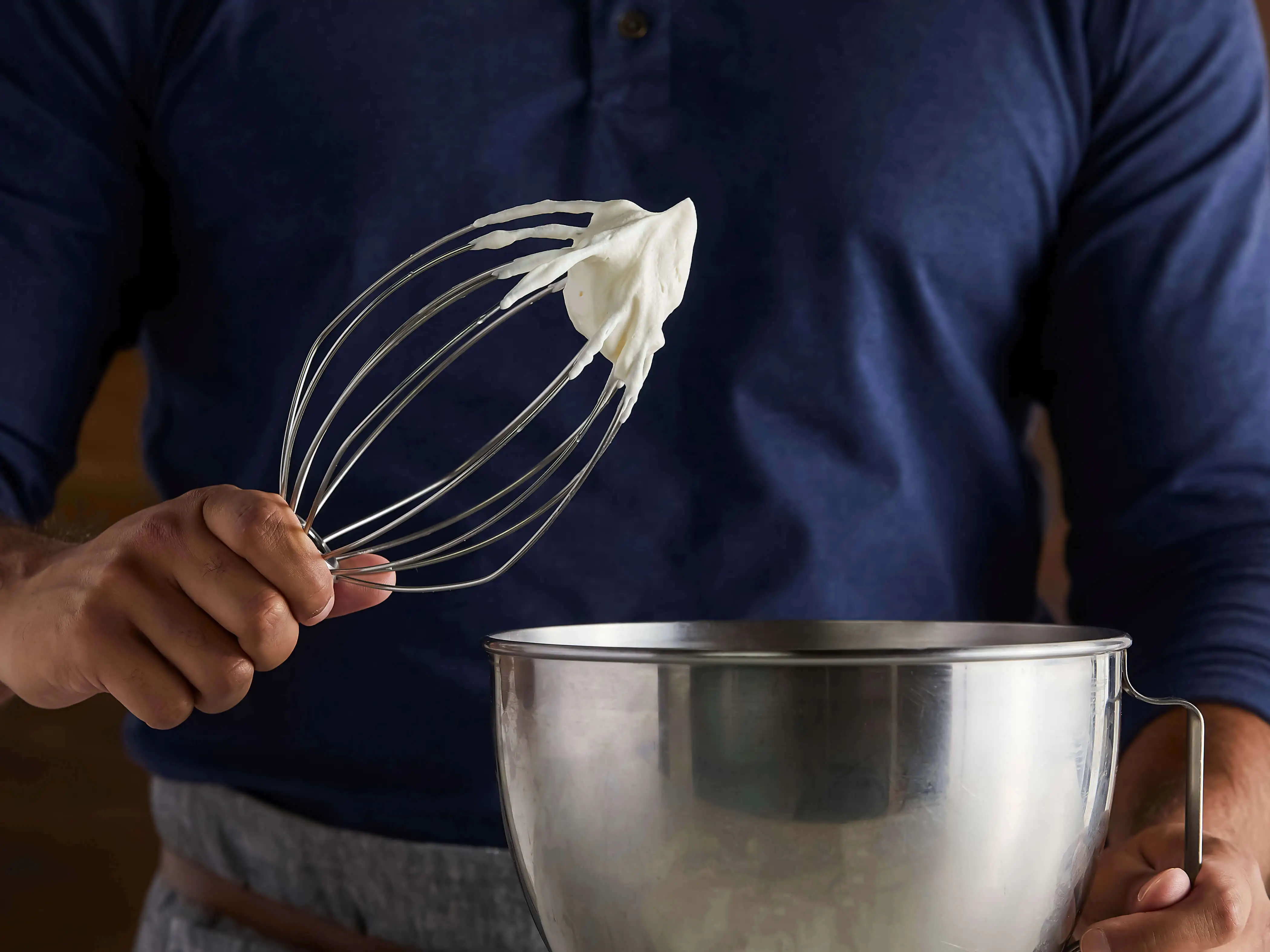 - Return to medium speed and whip until the mixture can form small hills when dropped from a spoon.